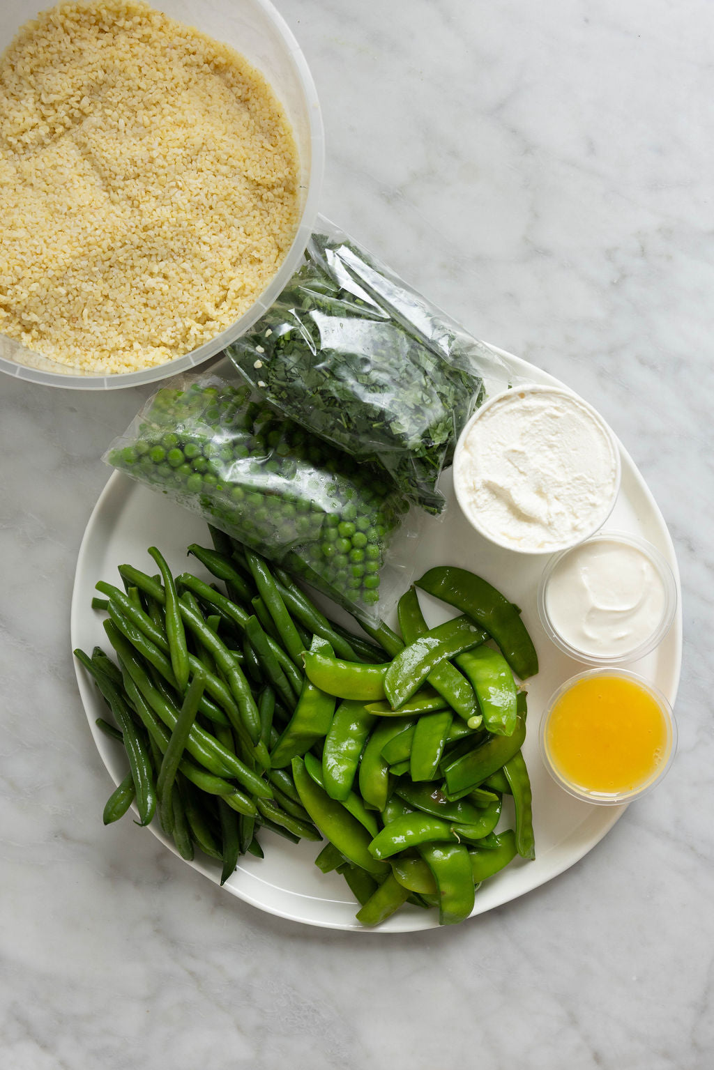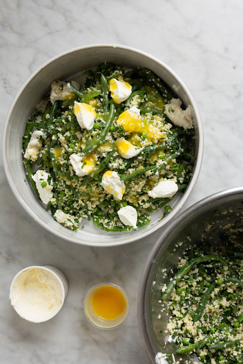 Bulghur wheat, green beans, snaps, peas, ricotta, zesty orange dressing NF