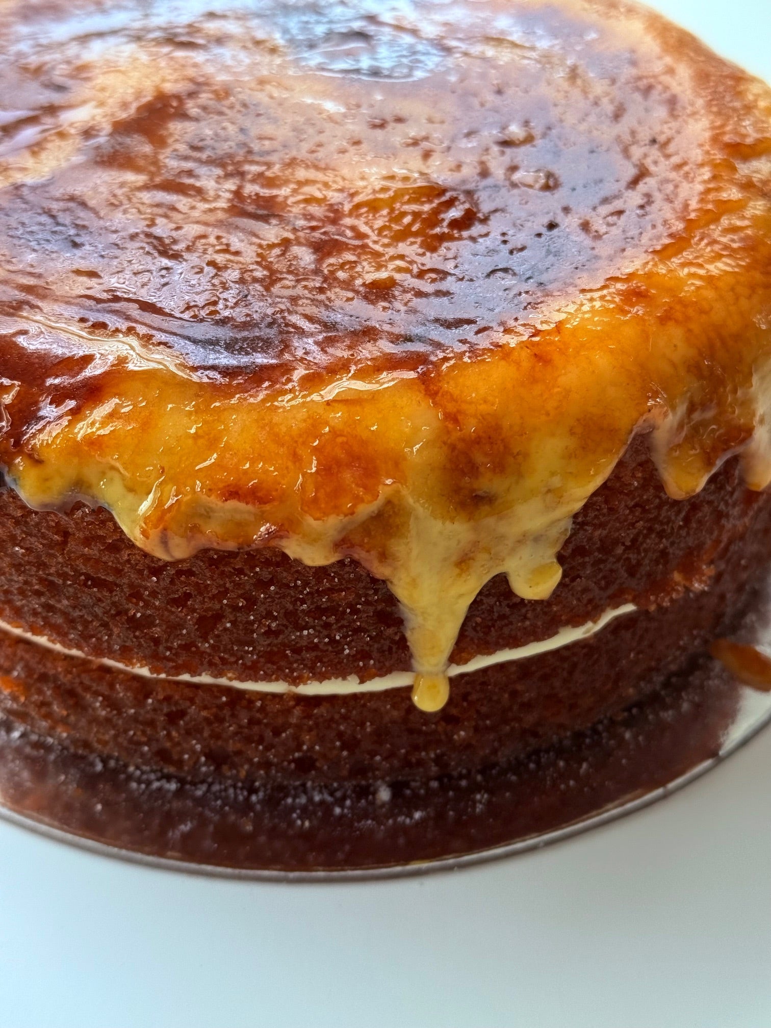 Rhubarb & apple cake topped with cream brulee. Perfection.