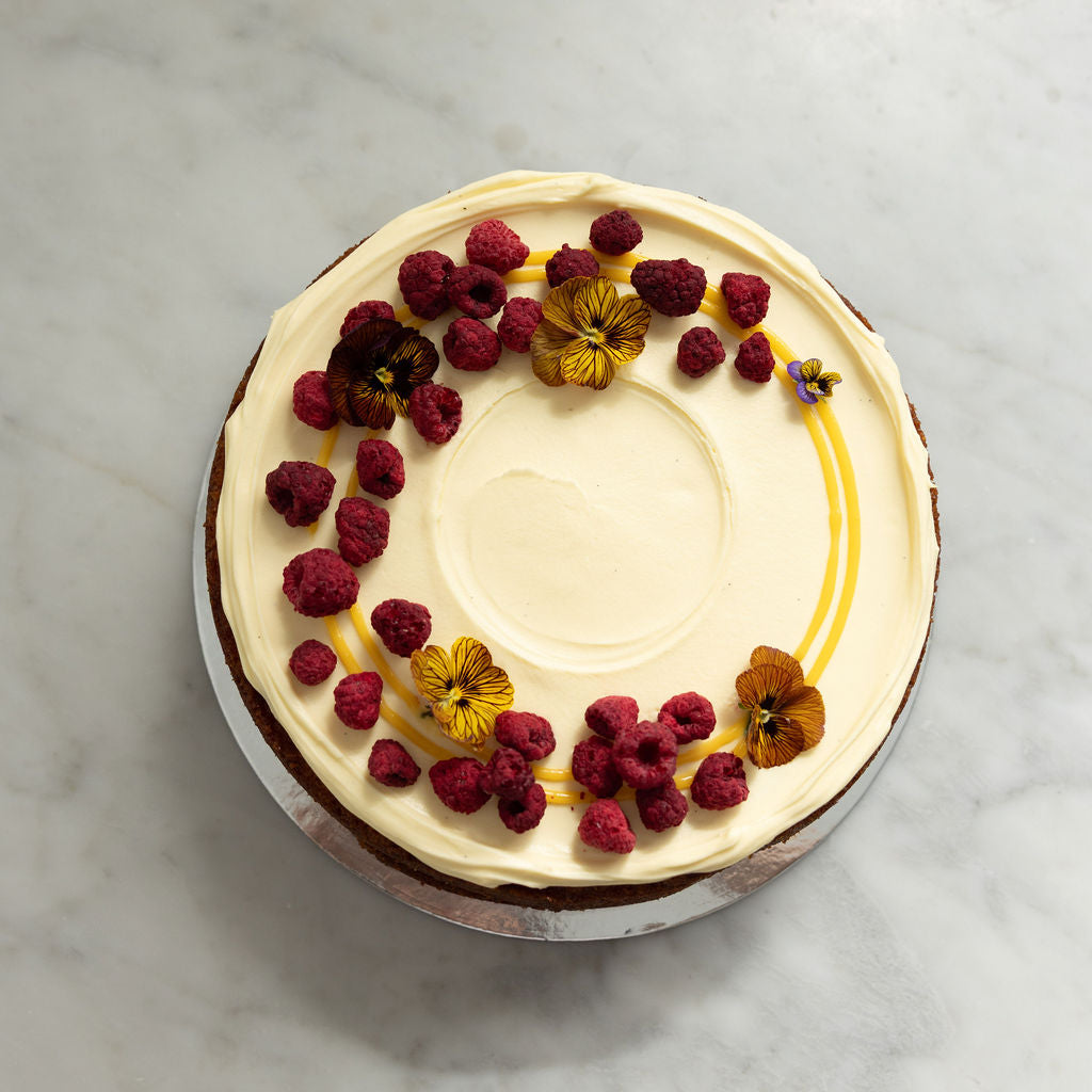 Our signature cake, that pleases all tastes. Tangy lemon curd, creamy vanilla mascarpone, layered in this amazingly moist cake. You will be eating any leftovers for breakfast.